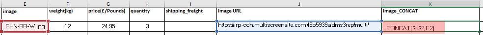 7.5. Next,add/insert a new column with name Image_CONCAT. Then use the for function CONCAT where you should add the IMAGE URL and the image name.
