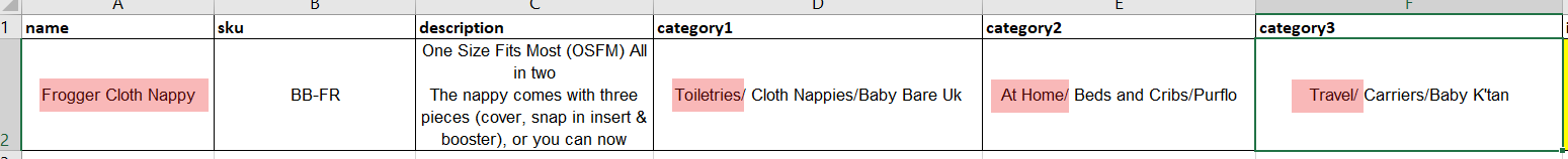 b. If you want a product to exits in different categories, you could fill also the columns “category2” and “category3”.