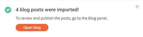 You will have to click on "Open blog" we do this because imported articles will not be published so you have to publish them yourself (noo, not one by one). When opening the blog you should now see a button that lets you publish the posts.
